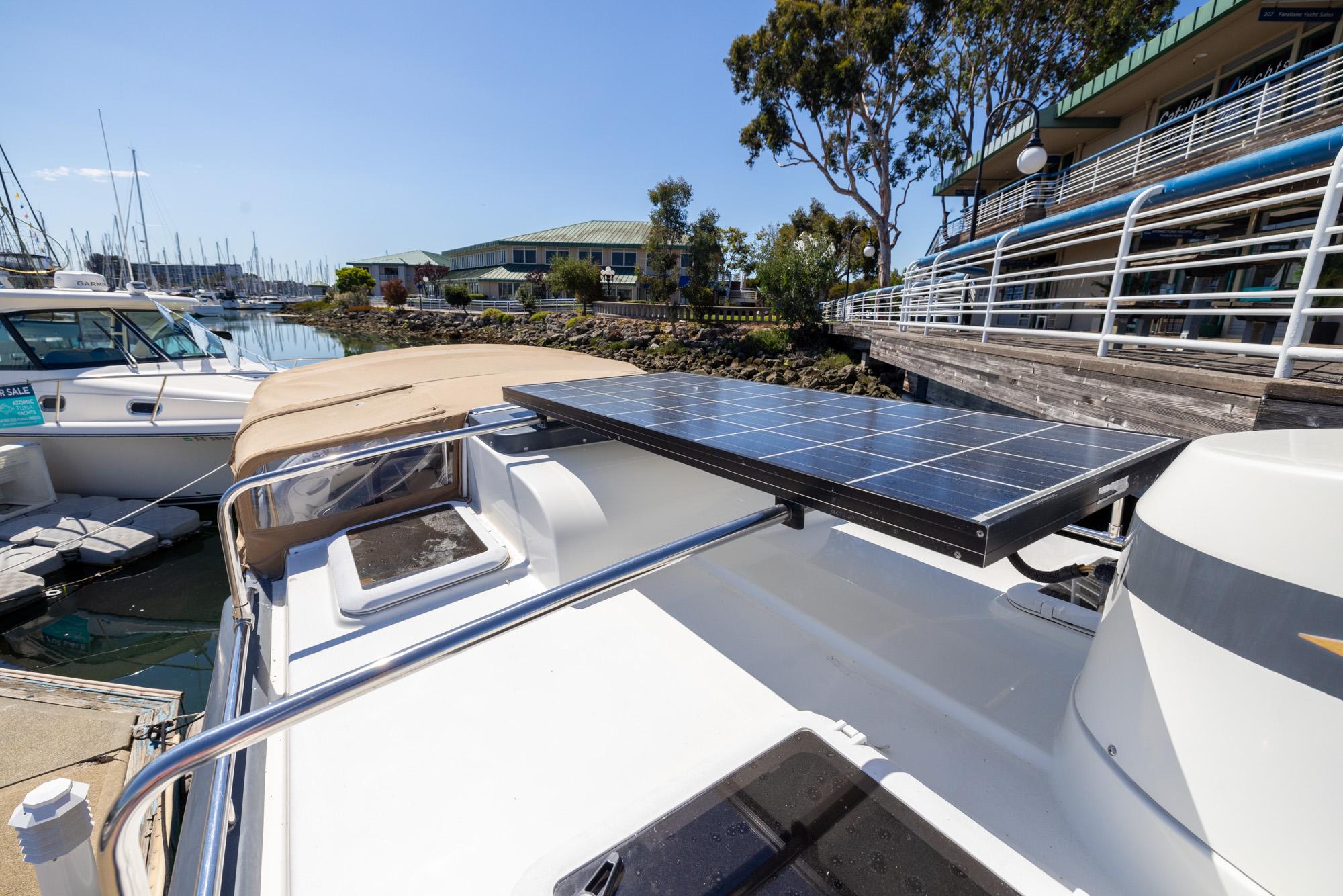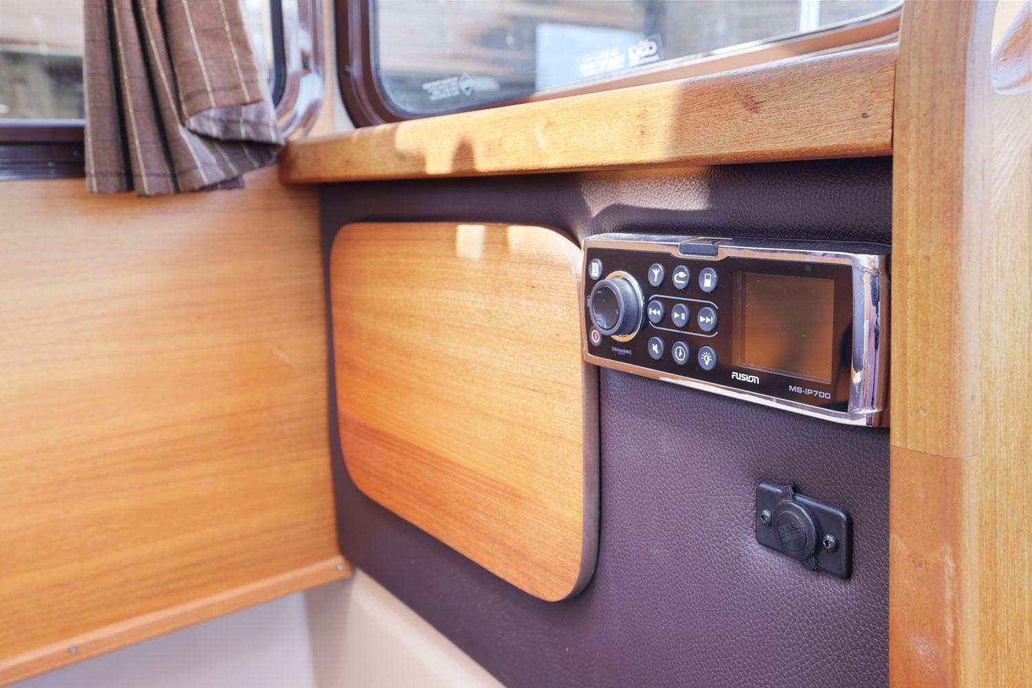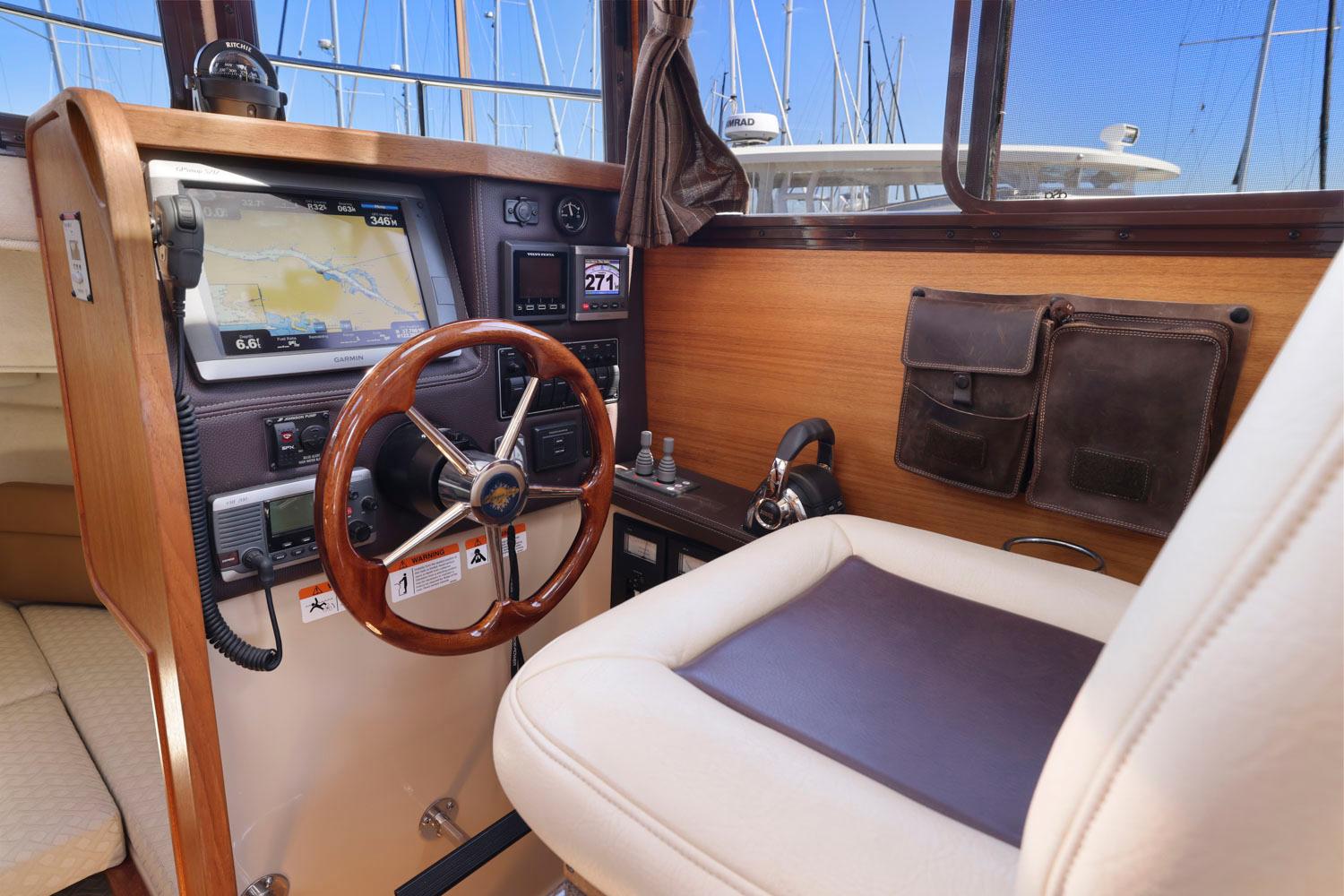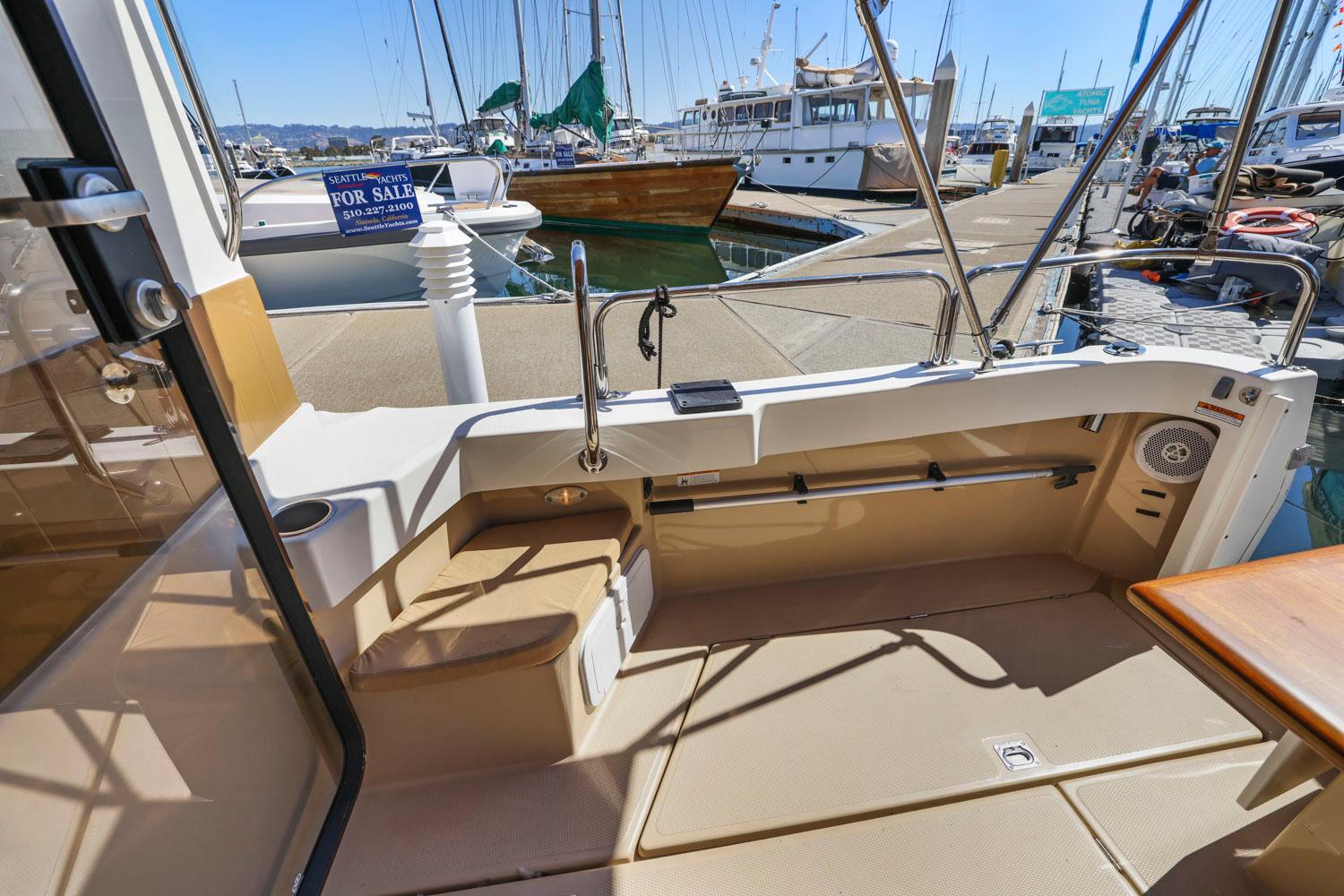 Features like standard bow and stern thrusters provide for excellent maneuverability around the dock and the 8’6″ beam allows the boat to be easily trailered.