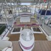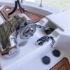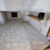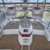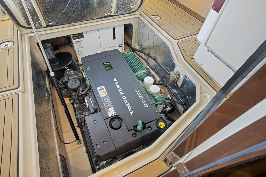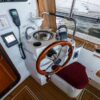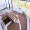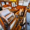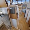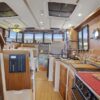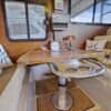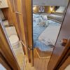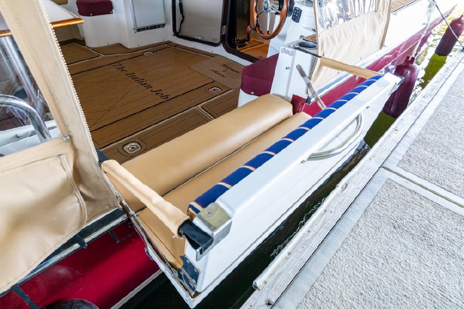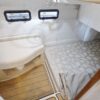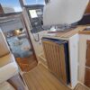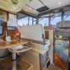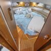 The interior layout of the “ITALIAN JOB” features two staterooms – the owners stateroom is forward, featuring a large island berth forward with ensuite head and a midship guest berth, accessed from the aft port side of the salon. The guest cabin also offers a day head. The interior walls and cabinetry is handcrafted teak in a satin finish.