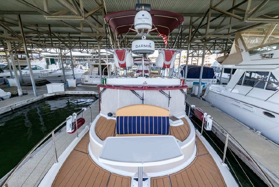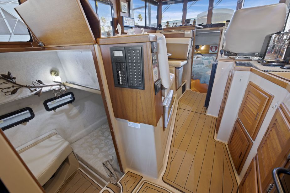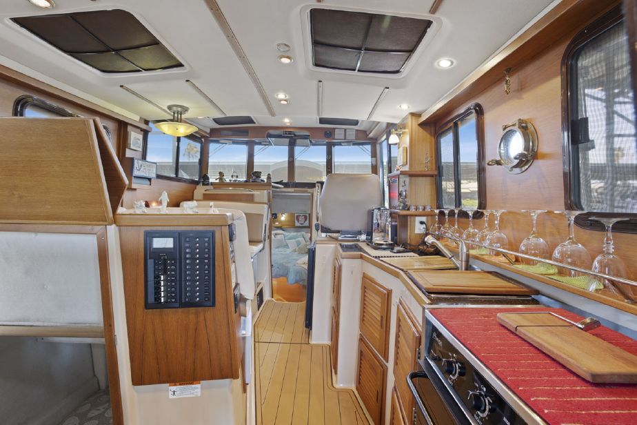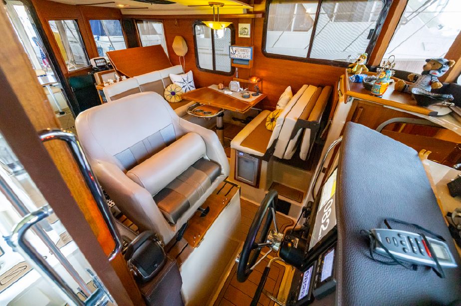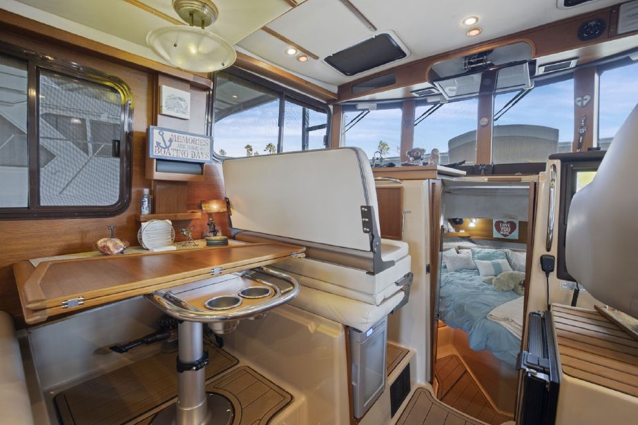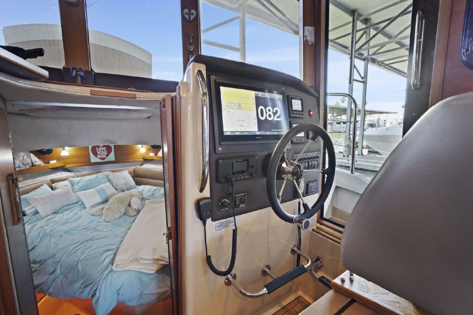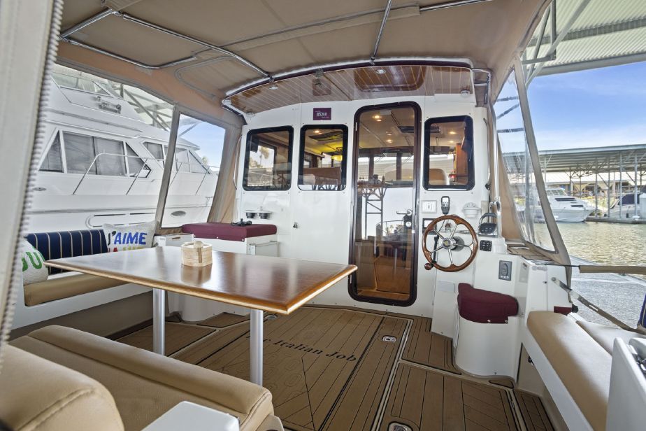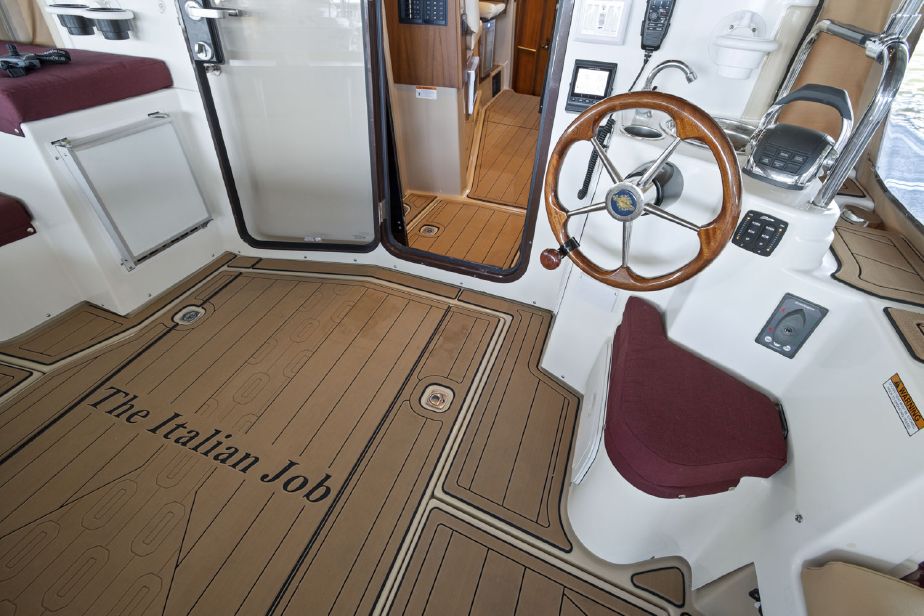 Customized Ranger Tug Sedan converted to a Command Bridge! ITALIAN JOB comes with an additional helm station in the aft cockpit, customized captains chairs and bench w/cooler on the cabin top, customized interior and exterior composite deck flooring and LED lights throughout the boat and a plethora of electronics. ITALIAN JOB has all options available on a Ranger Tug R31S and more. She has been meticulously maintained and is berthed in a covered shed in Discovery Bay.