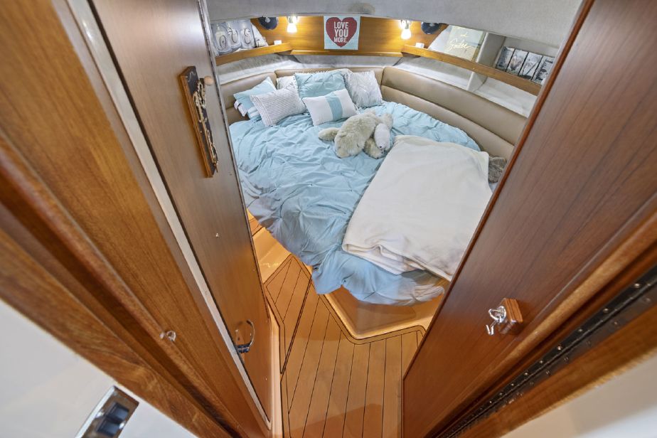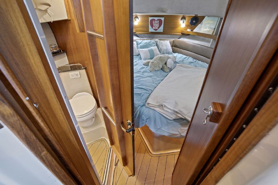 • Forward stateroom with an island berth, en suite head and shower