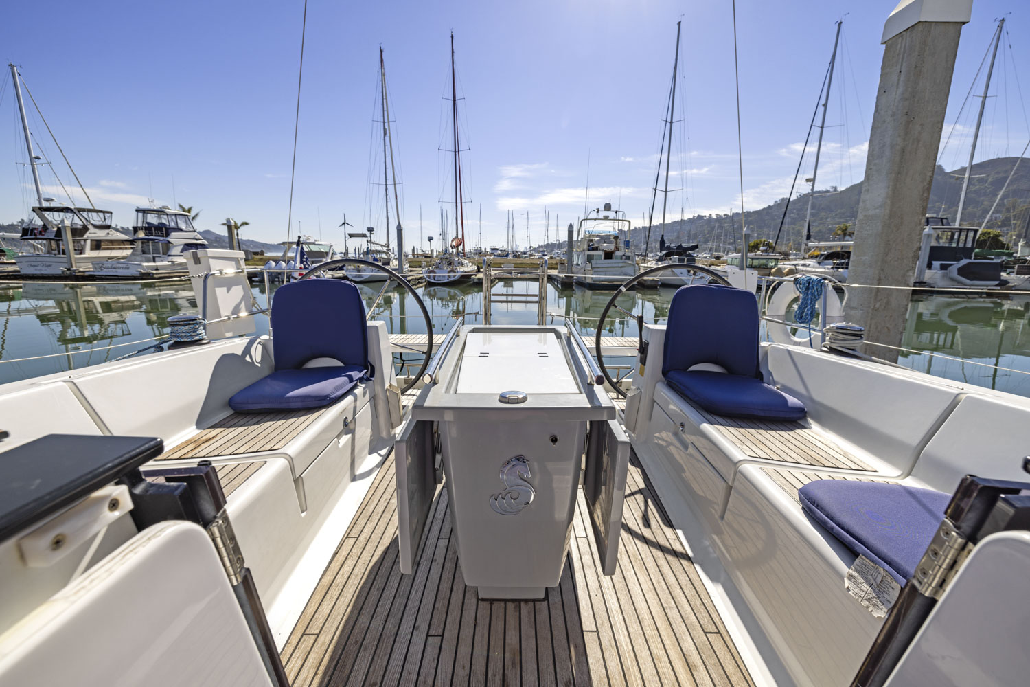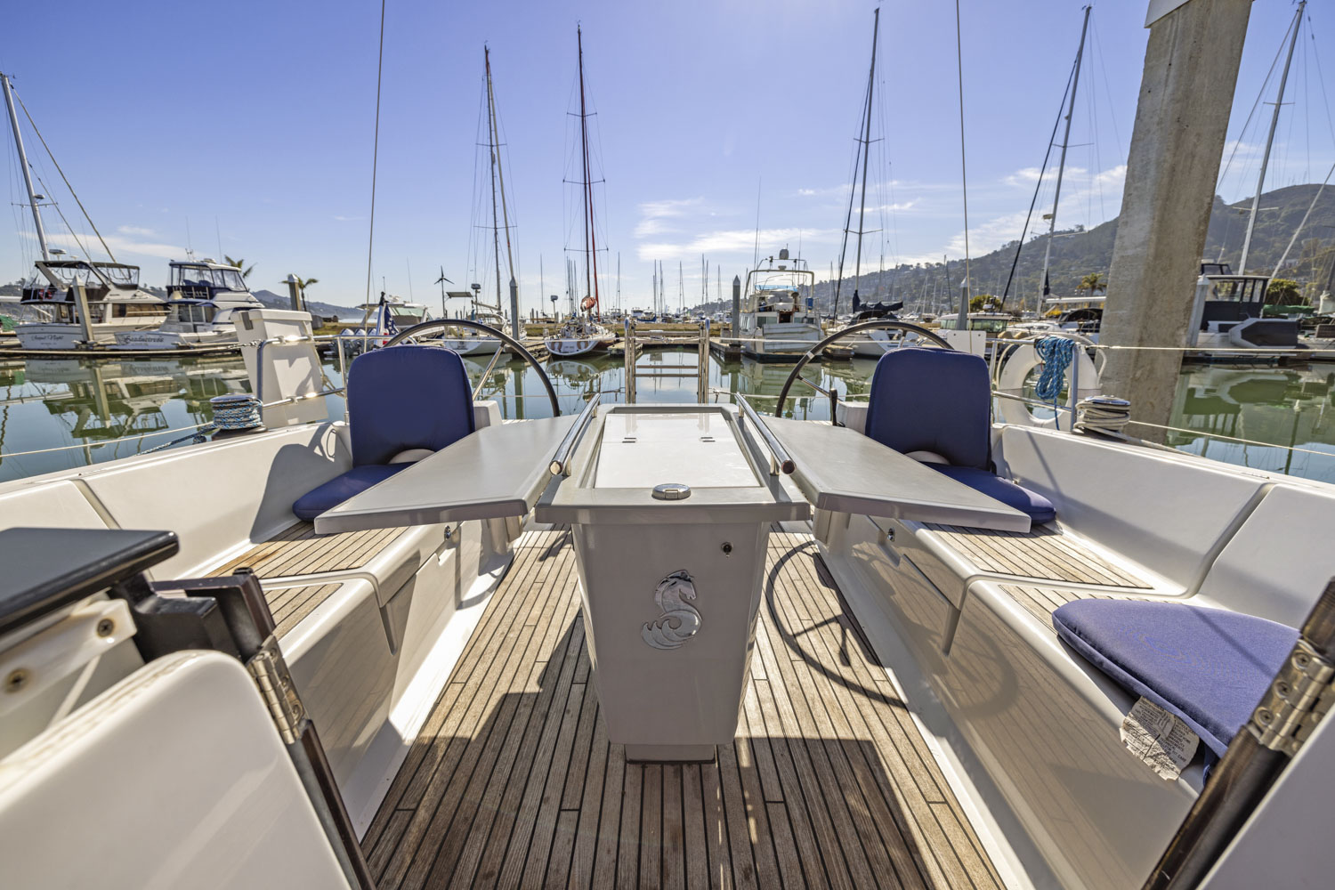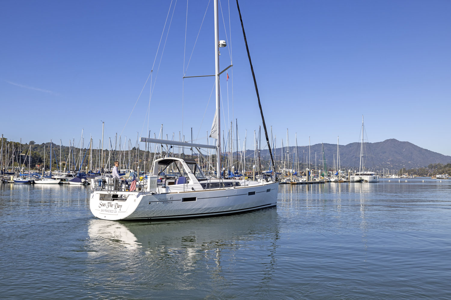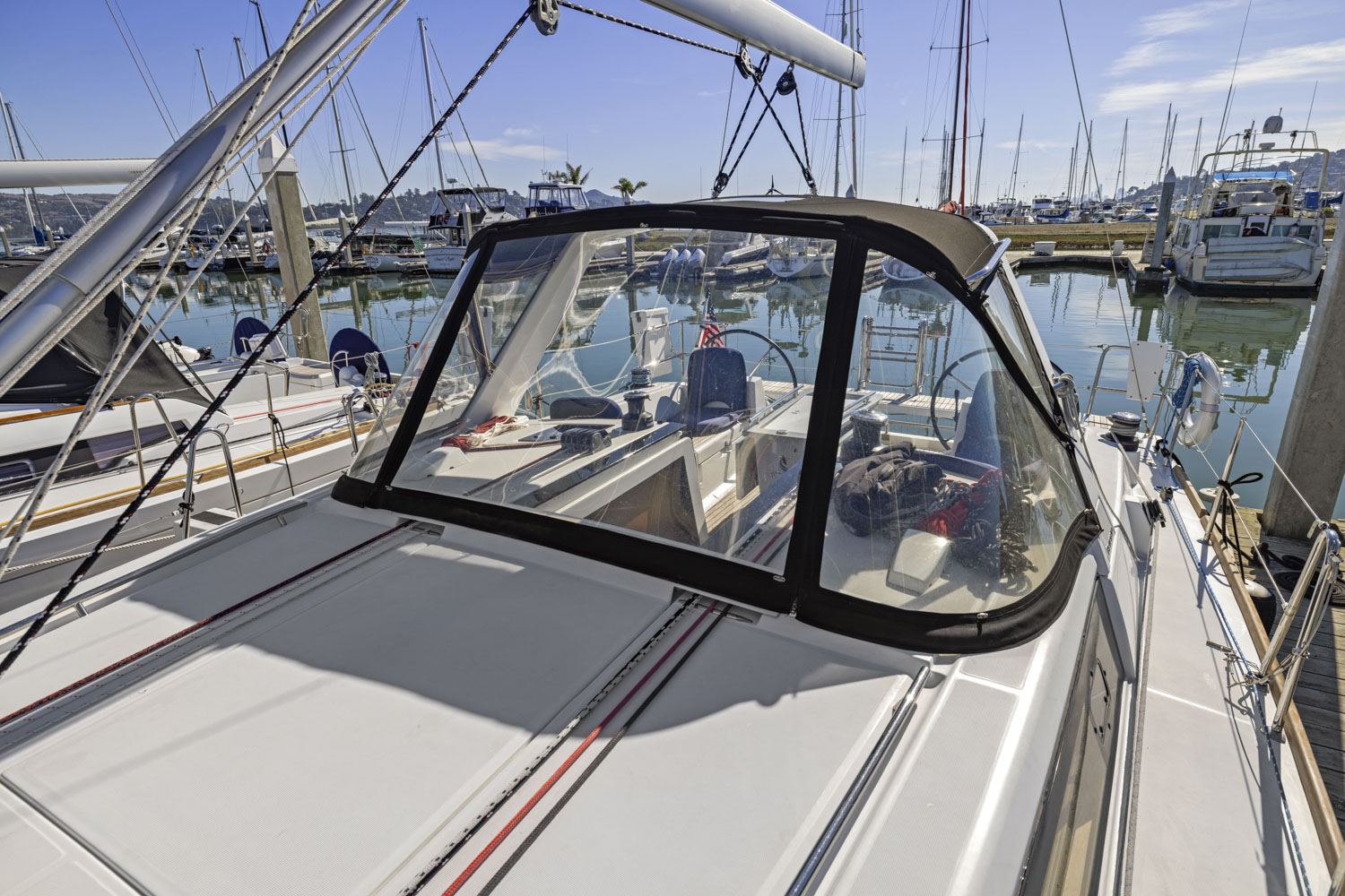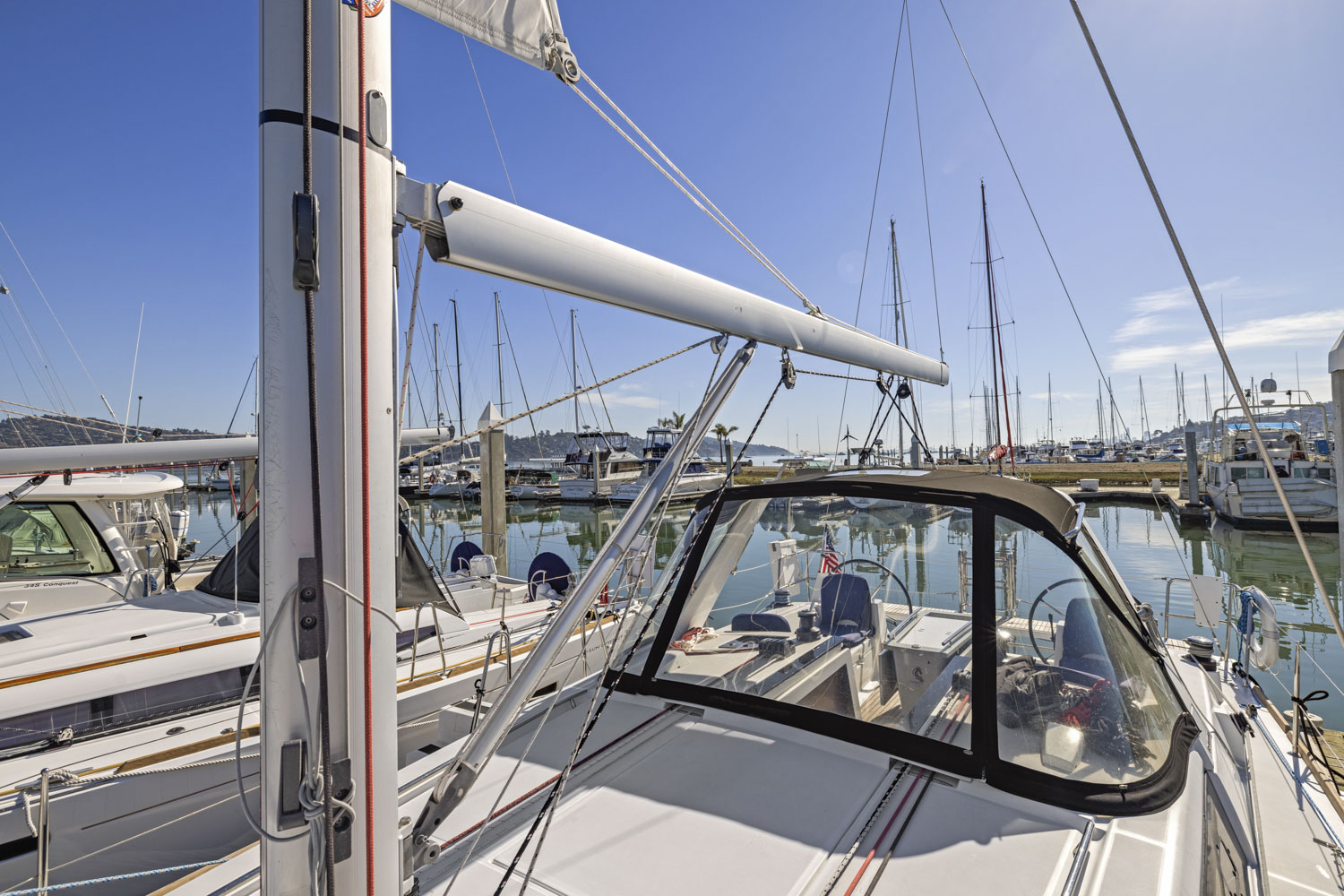 SEA THE DAY is a two-cabin, single head layout with a lot of comfort options: air conditioning w/ reverse heat, full electronics, furling mast, dodger and more.