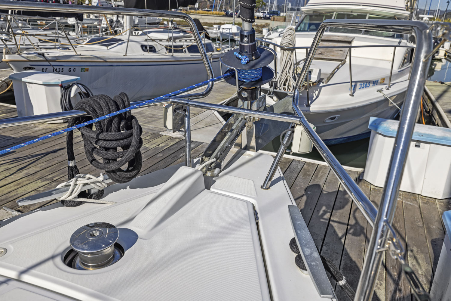 - 1 Self-tailing electric winch on port cabin top
