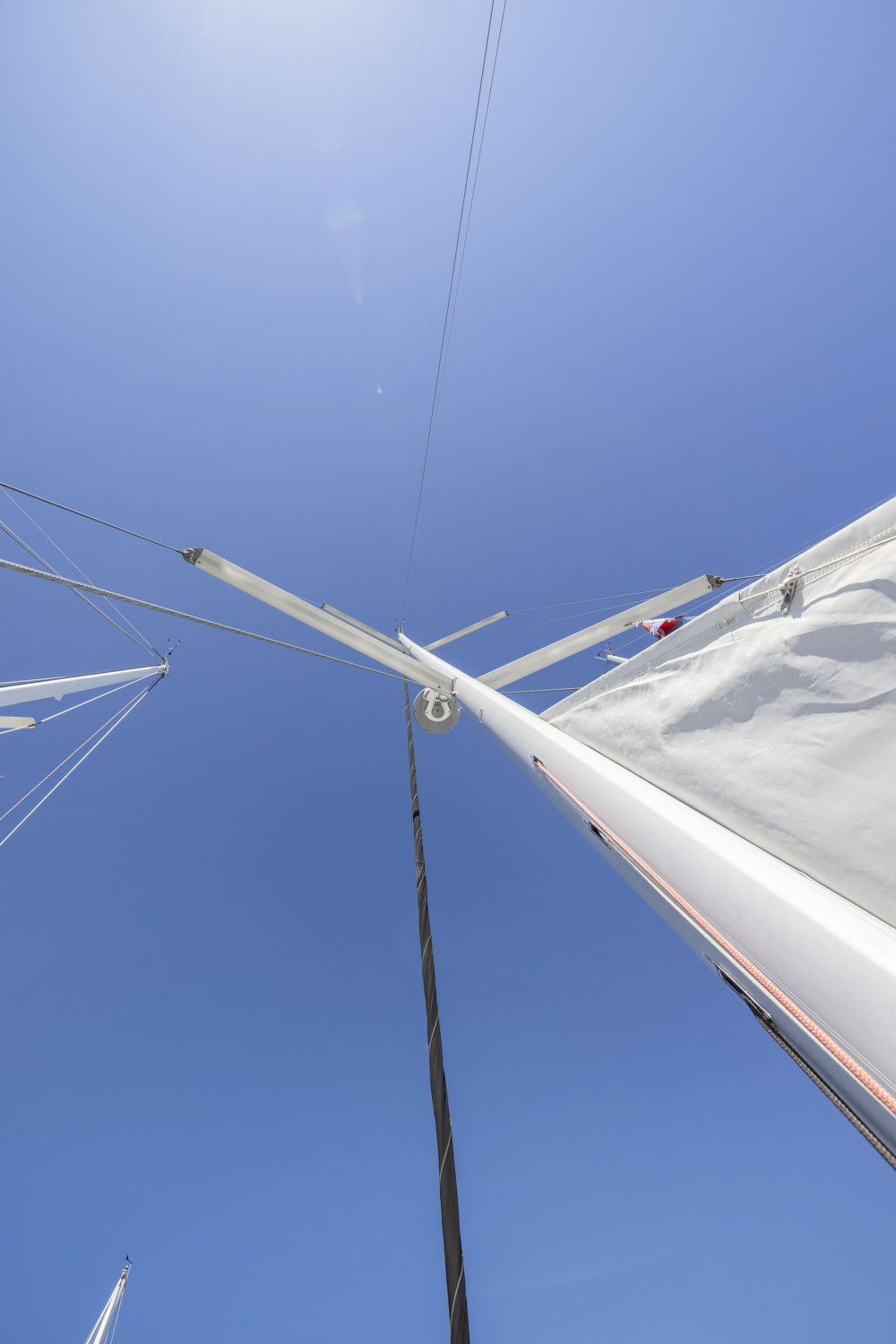- Mast 9/10 anodized aluminium installed on the deck, 2 aft-swept spreaders