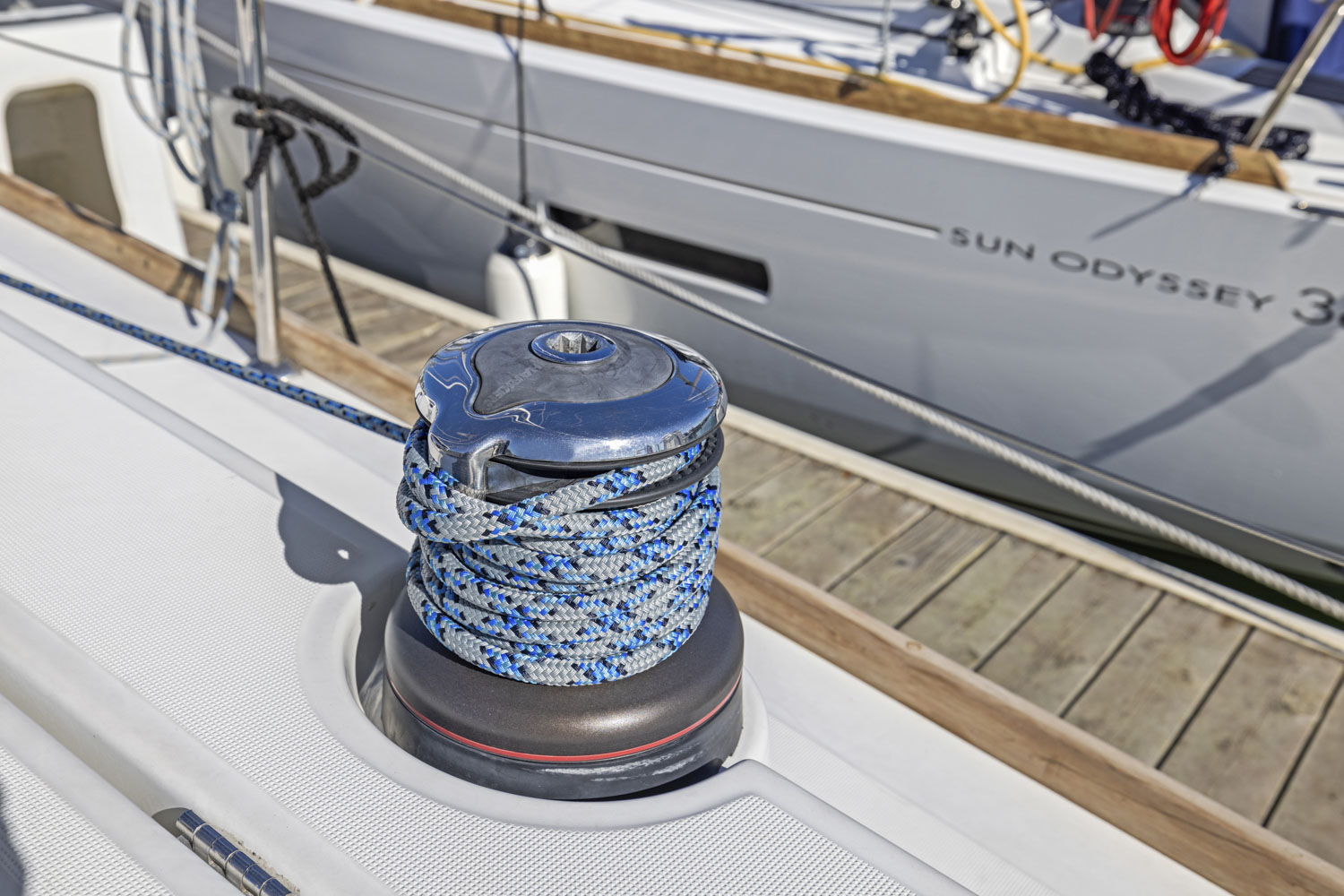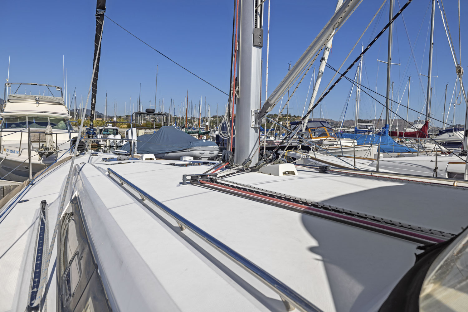 - Complete running rigging: Main halyard, genoa halyard with clutch on mast and cleat, boom topping lift with cleat on mast, mainsheet, 2 genoa sheets 2 reefing lines