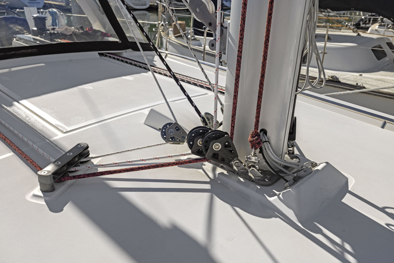 - 2 blocks stand-up on mainsheet arch