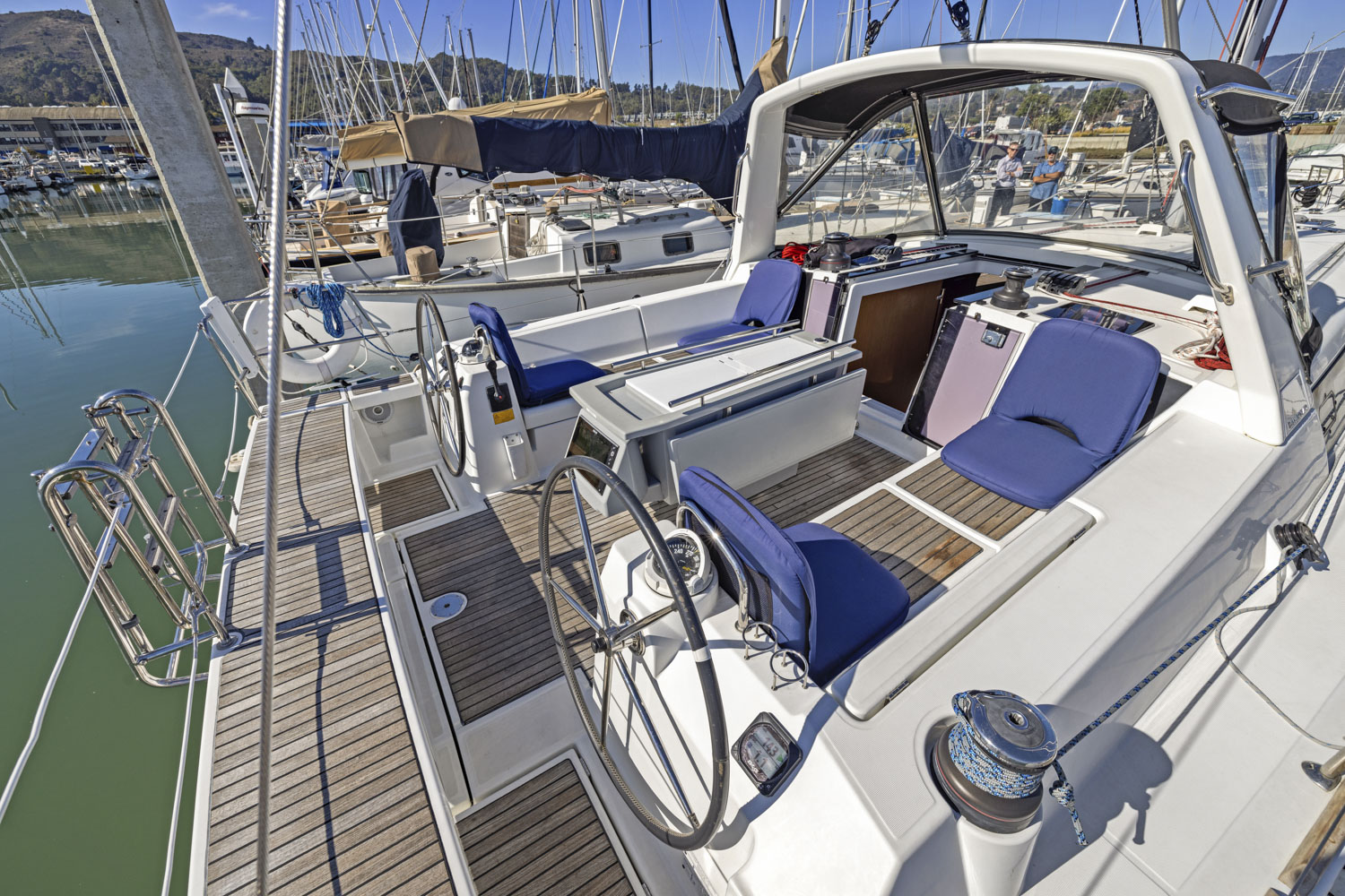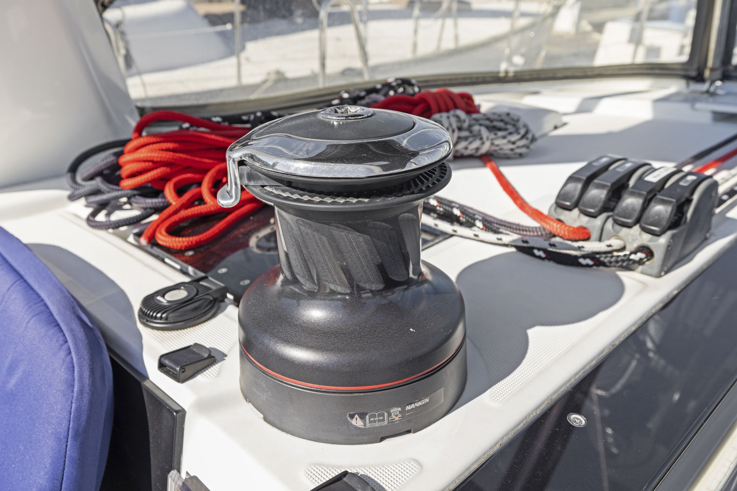 - 2 Electric Harken self-tailing genoa sheet winches