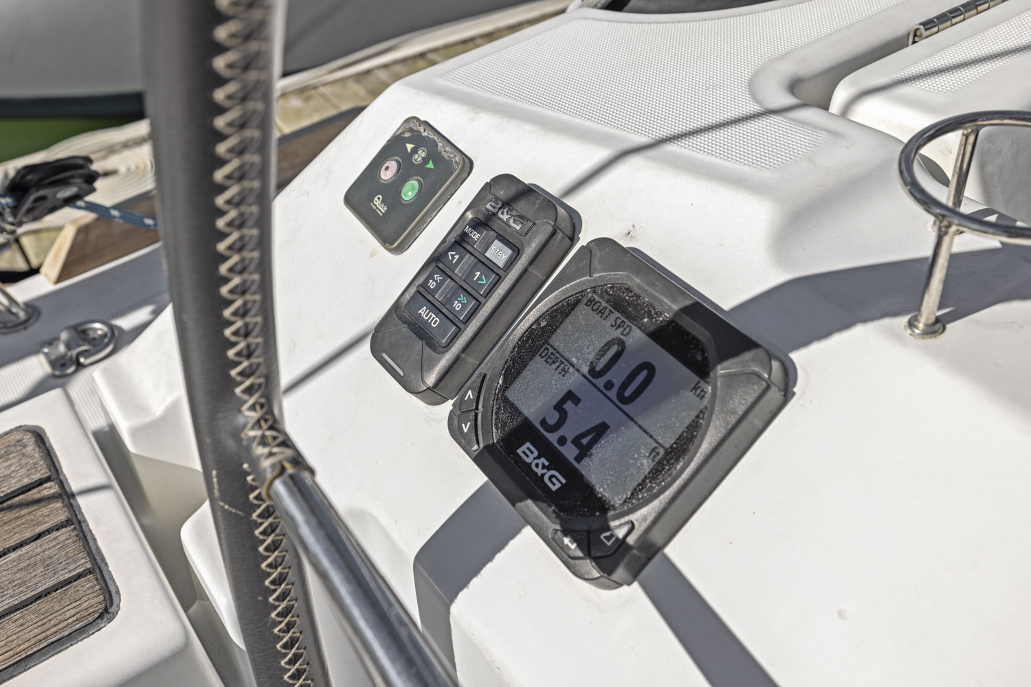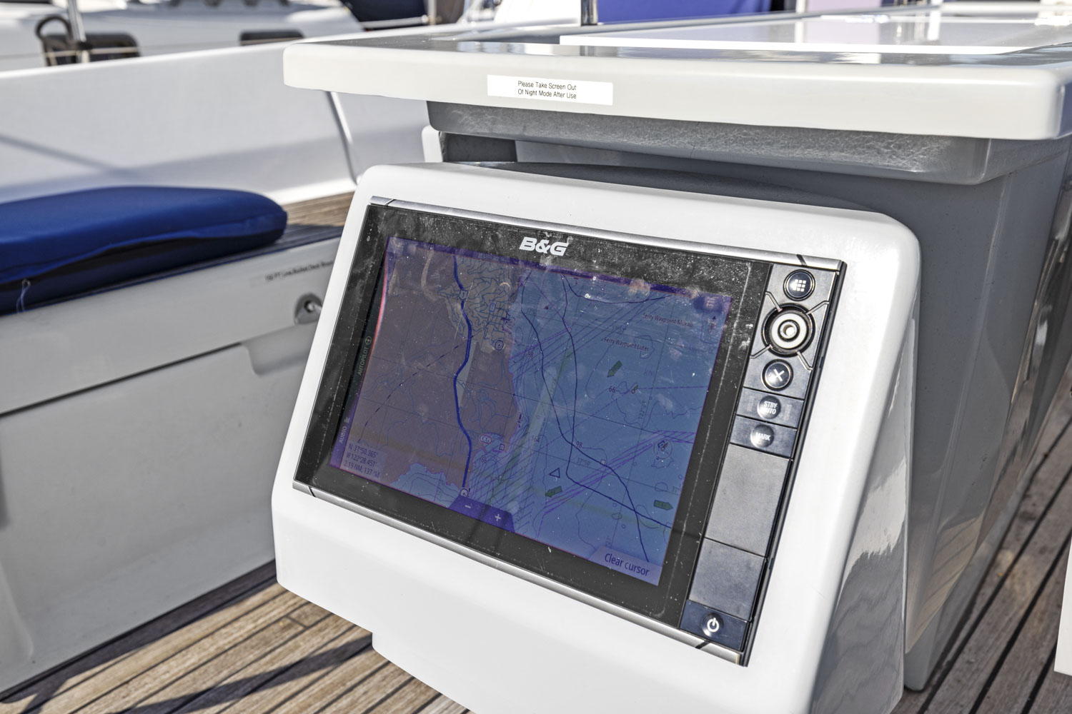 - B&G 12″ multi-function display in cockpit. Radar, chartplotter, gps.