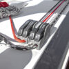 - 2 genoa tracks with piston adjusted traveler cars