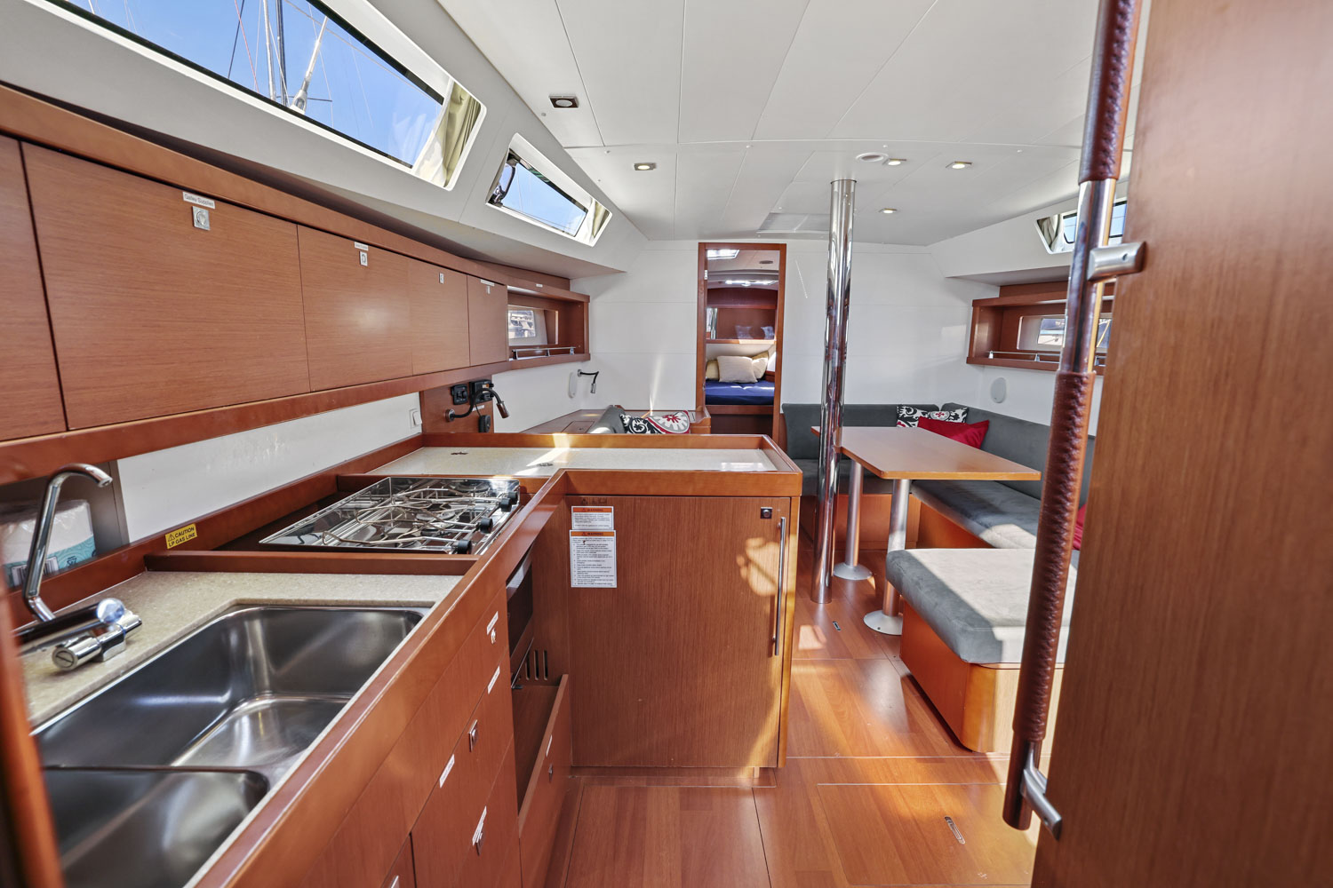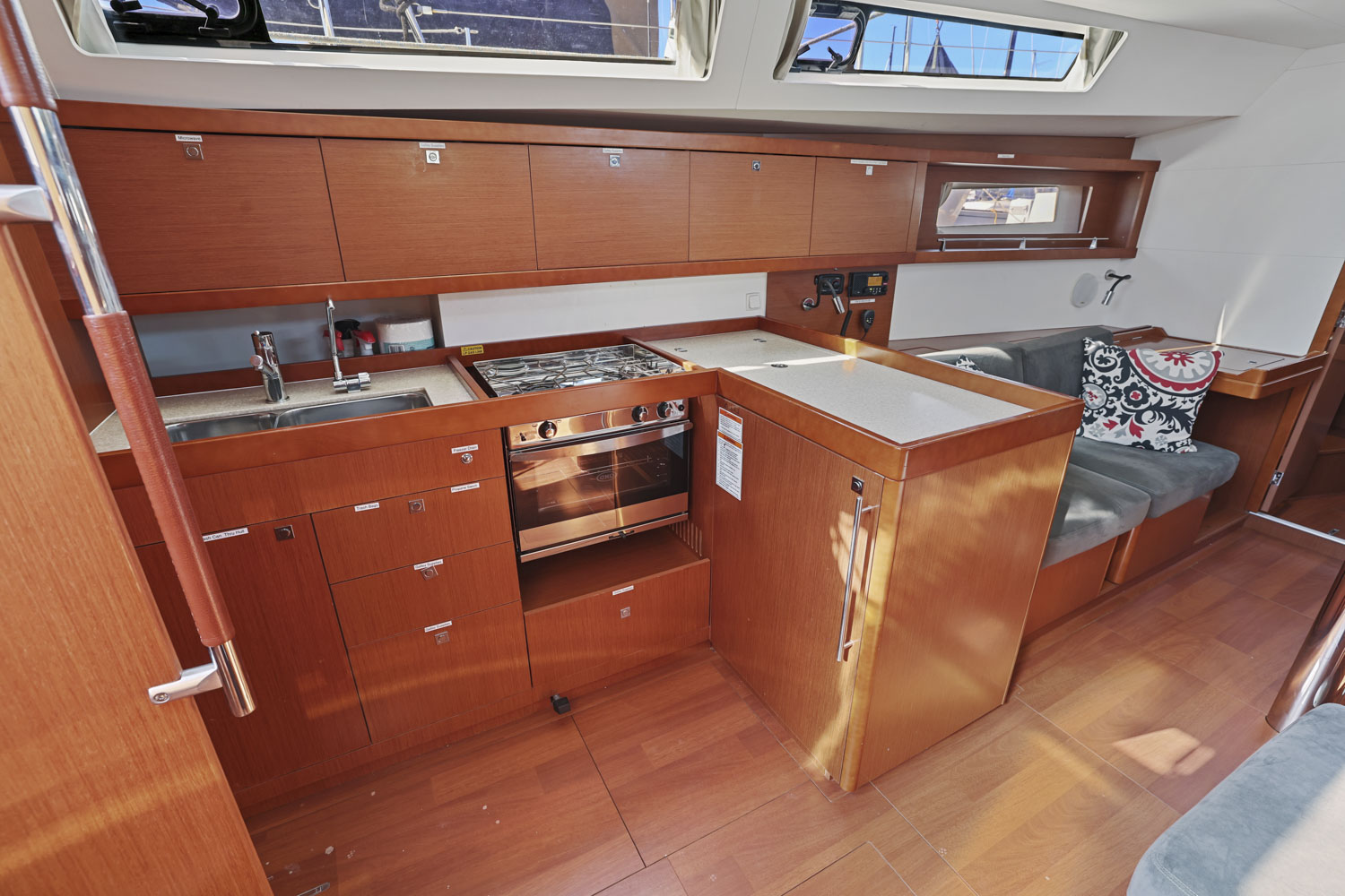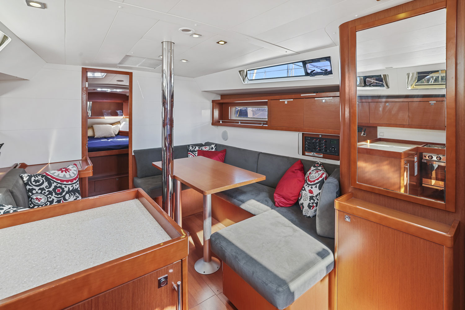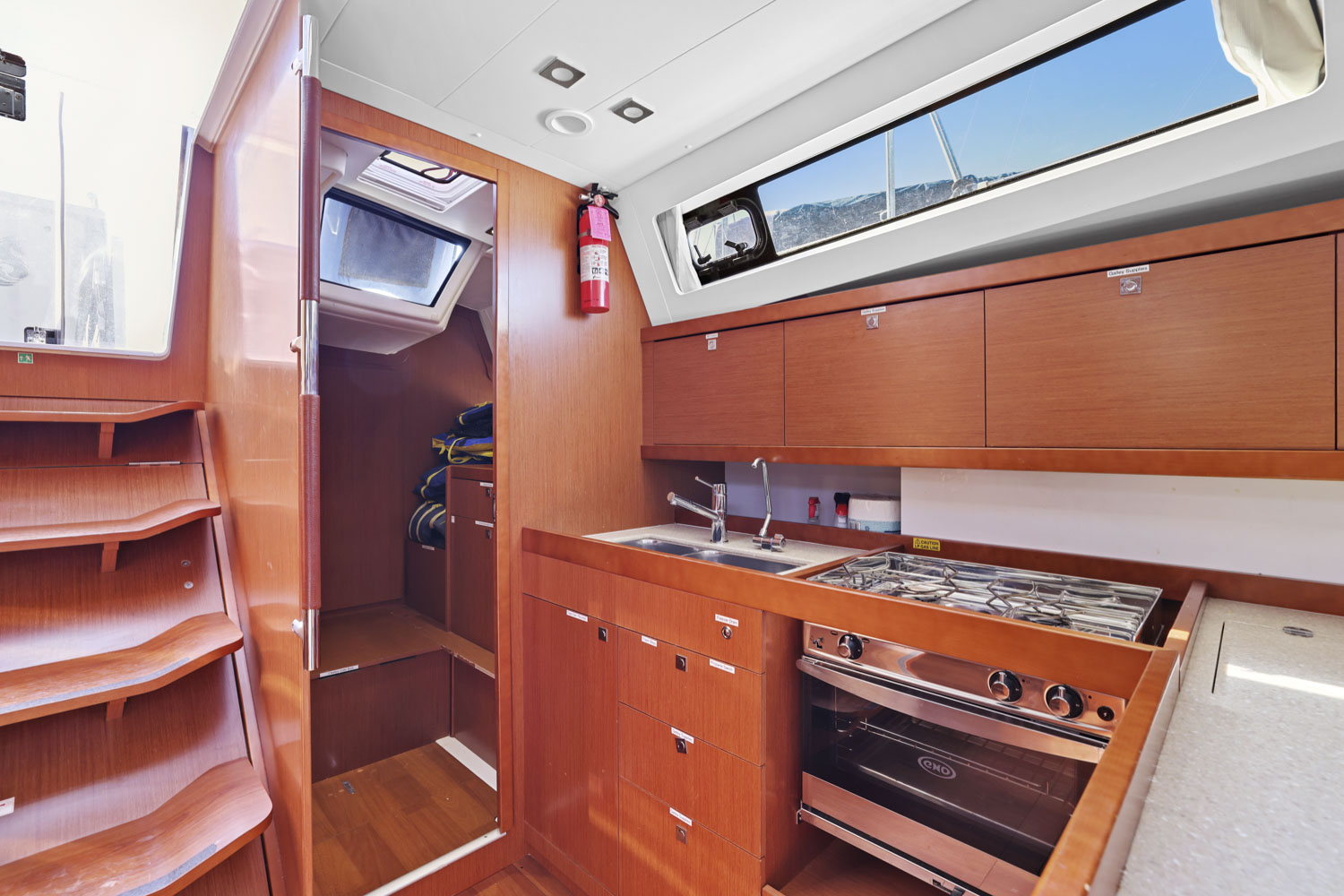 - “Butler’s” pantry to port with storage and access through cockpit locker