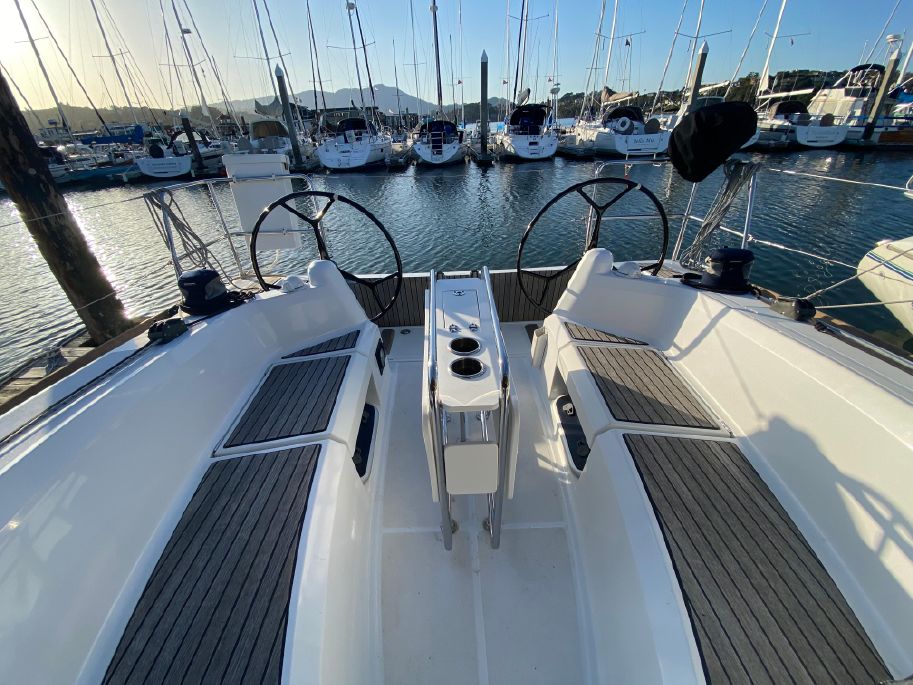 - Teak plank on cockpit seating and dropdown stern deck