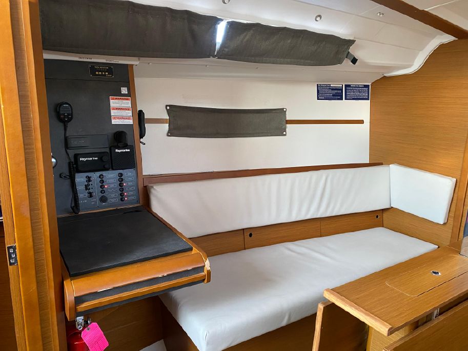 - Drop leaf table in cockpit with ample room to transit forward