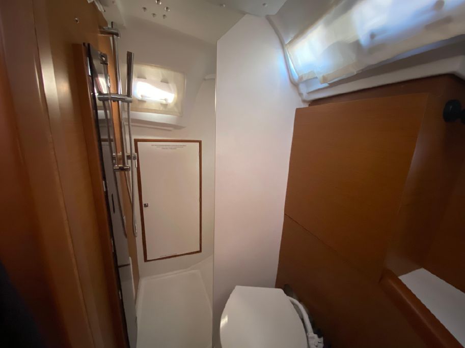 The interior is bright and roomy on this late model beauty. This two-cabin model has a large shower and storage plus a small crew berth in place of the third cabin.
