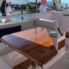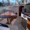 The TN Outboard Express has a huge cockpit for lounging at the dock, at anchor or underway. Moving forward there is a seating area that seats 6 or more comfortably with a beautiful teak table. The galley is up and early accessible, especially while underway.