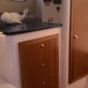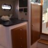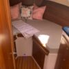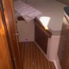 As you enter the below deck accommodations, you will notice the superior finish work. There is a v-berth with insert that makes into a large double berth. And a fully enclosed head with electric toilet and shower.