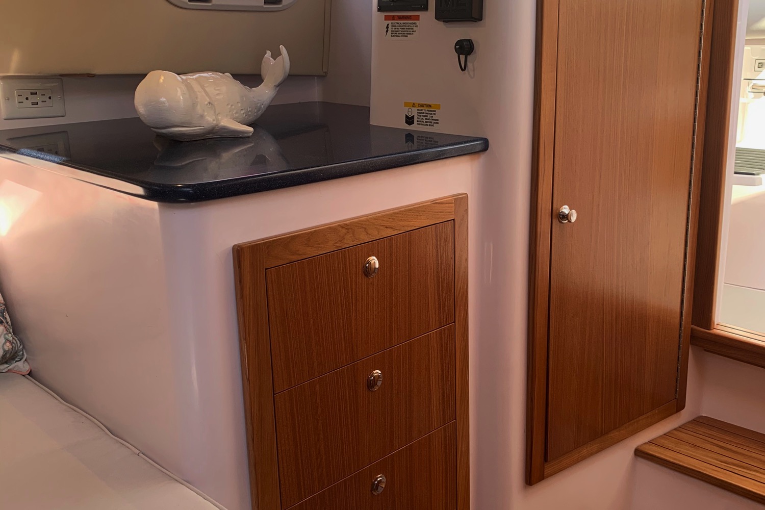Boats can bring people together better than any other activity. Eating and socializing with friends and family is more than half the fun. All current True North owners agree that one of the most popular features of the boat’s “open concept” interior is the “galley-up” configuration, and the Outboard Express is no different. Serious cooks love the large and well-equipped galley and everybody loves being up in the center of the action.