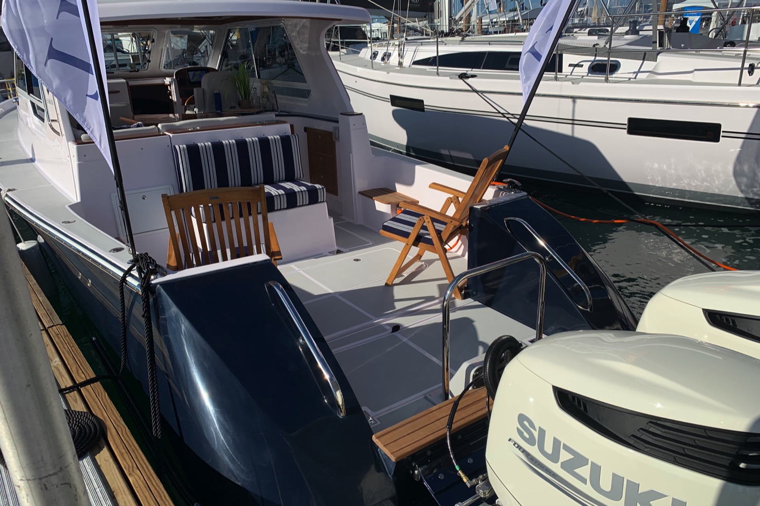 As you approach the True North 34, you will be greeted by the pleasant view of a boat that shows its Downeast heritage, but has the latest technology Suzuki outboard engines for maximum speed, fuel economy and low noise.