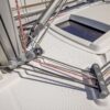 Entry to the cabin is through a two part Plexiglas hatch door that folds out of the way. The hatch stairs are wide, but not steep.