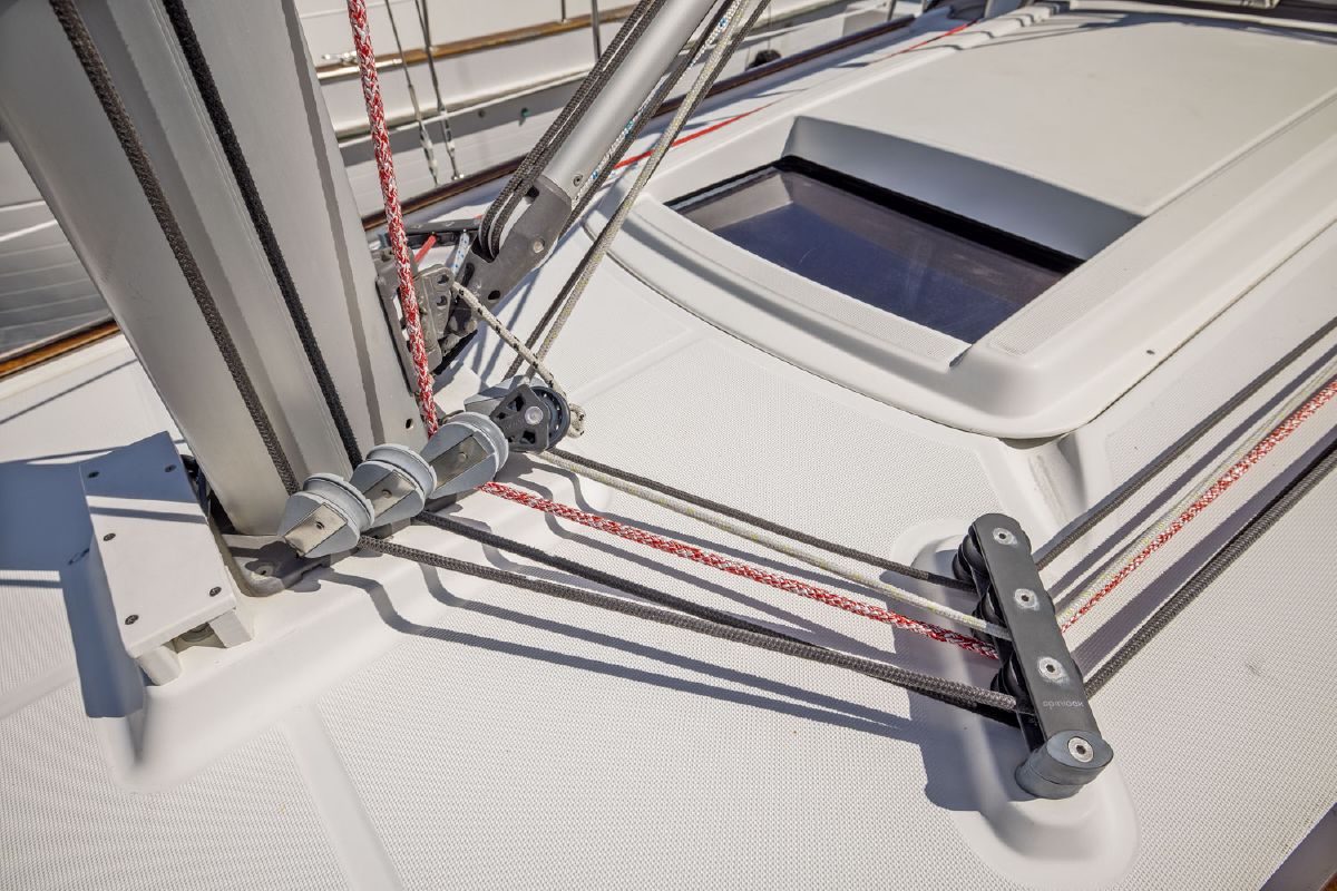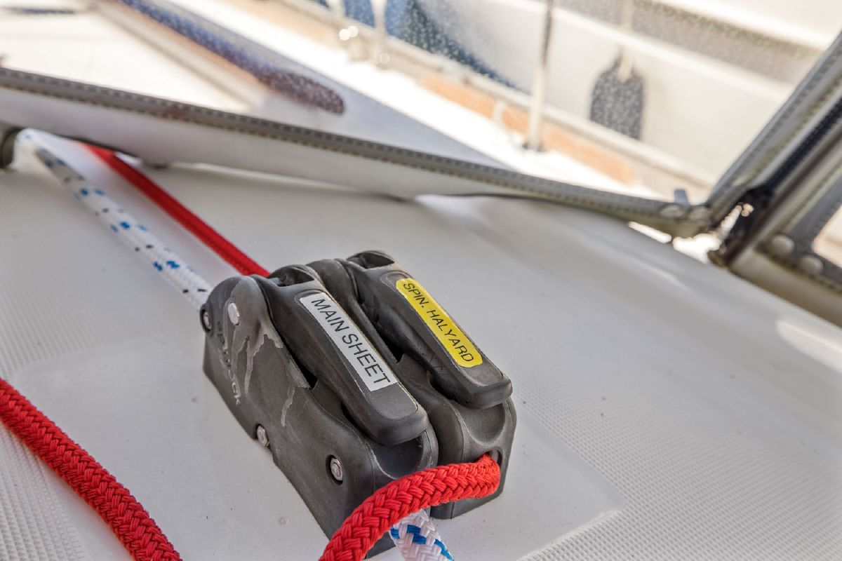 The two-cabin layout is comfortable for two couples on a weekend adventure. The salon has upgraded nautical covers.