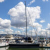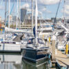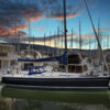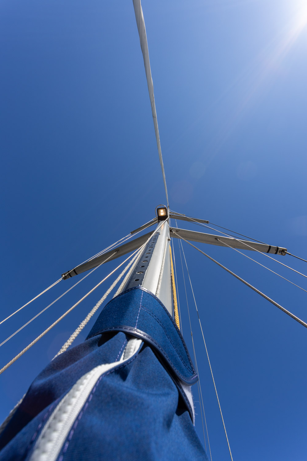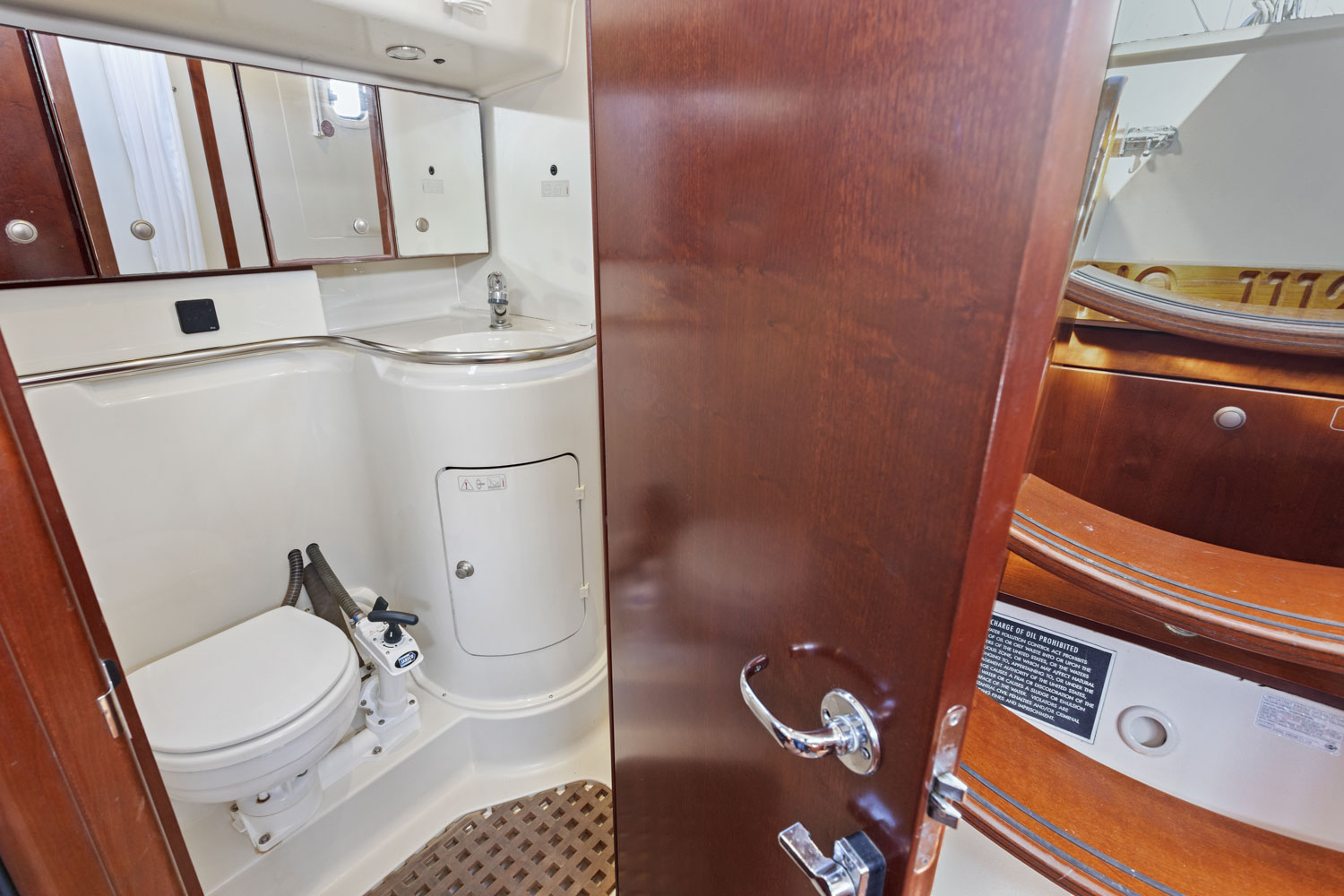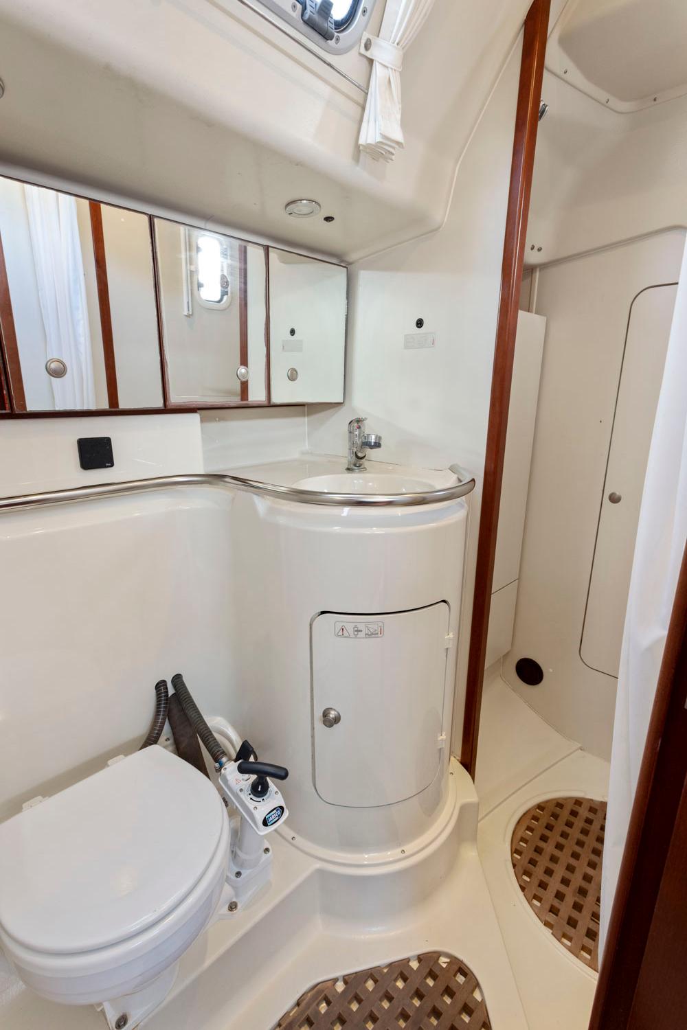 After of the galley is a queen size stateroom equipped with a hanging locker and drawers. On the port side behind the navigation station is the head with a separate shower.  Beyond the shower is a long storage locker for your sails, additional lines and tools.