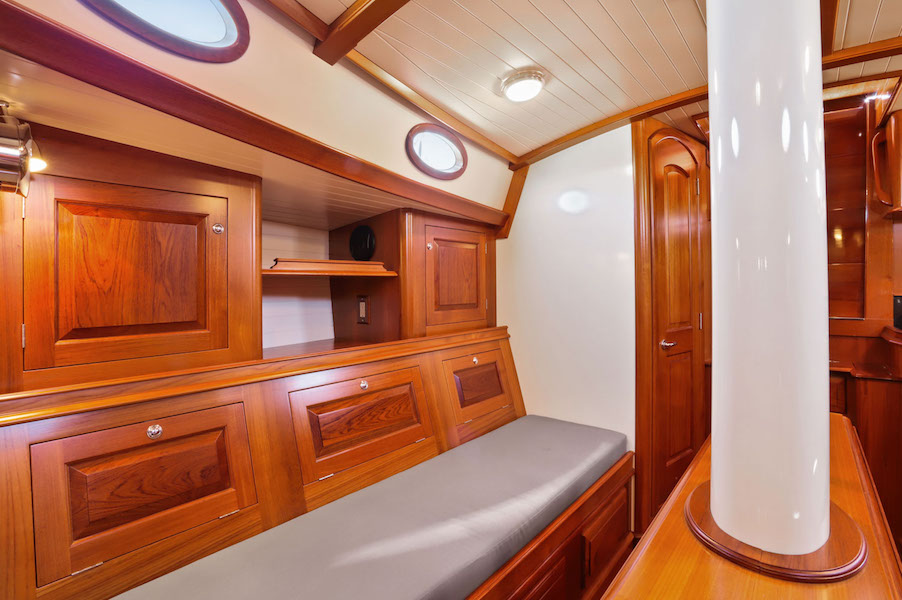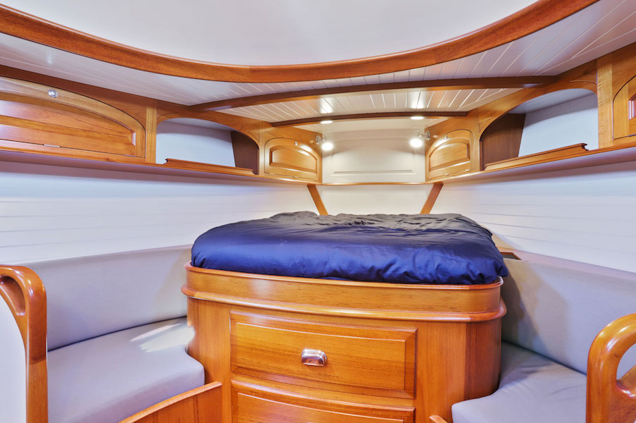 • Generous storage to include a cedar lined forward locker with a lift out the bottom to configure into a hanging locker