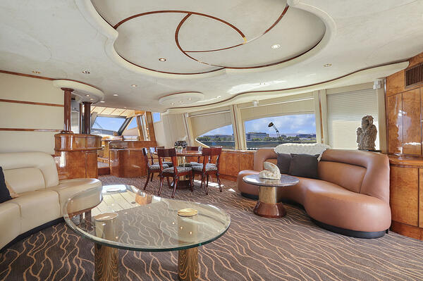 Powering YACHT LADY is a pair of Detroit Diesel engines 12V92TA with a combined two-thousand-two-hundred horsepower. The lounge provides a wonderful area for up to 4 guests and family to gather. She makes for an ideal place to watch the world roll by as you are underway. To starboard and port are twin pantograph doors that provide immediate access to the bow area of the yacht.