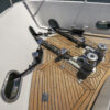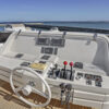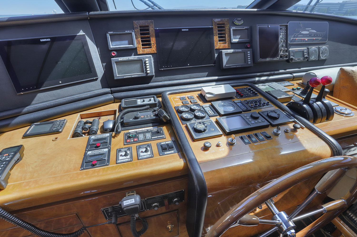 As for the comprehensively equipped dash, it includes a full array of recently upgraded navigation and communication electronics. To name a few, the dash contains a new dual SIMRAD GPS displays, Raytheon Raychart monitor with JRC GPS differential receiver, and much more, all flush-mounted in an over-sized dashboard along with the engine instruments.
