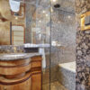 Increasing the wow-factor of the stateroom is the palatial ensuite head: with separate stall shower, Jacuzzi tub, granite bulkheads, marble countertops, and a sink which (like the staircase) is a fine piece of cherrywood craftmanship. Bottom-line: this palatial treasure infused with a Far East feel is a haven of stillness. Respite from the world. A cozy, comfortable, stateroom cabin for you and your spouse.