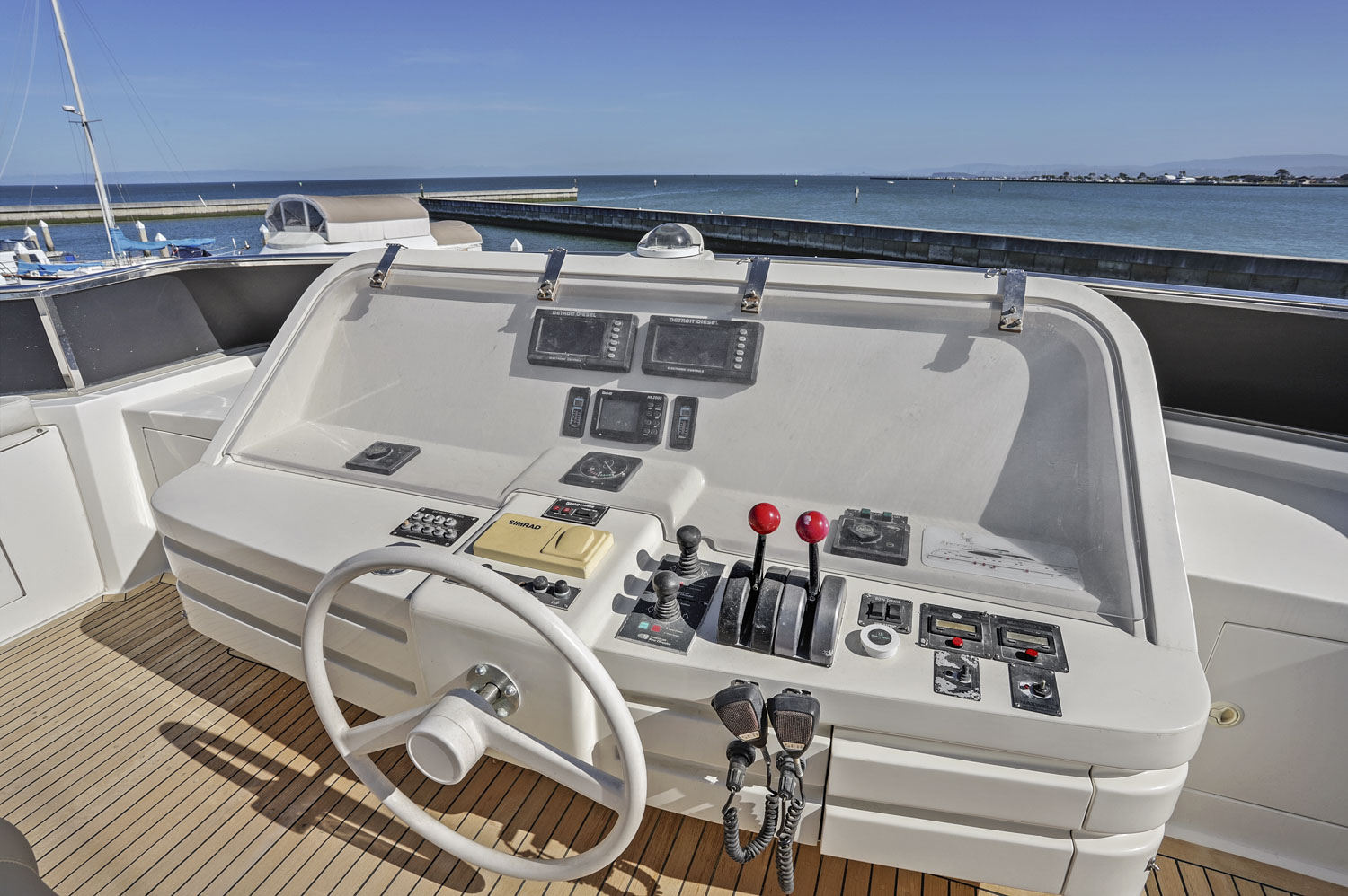 Also worth noting are the controls for the Naiad stabilizers for eliminating boat roll and wave forces to keep you and your guests at ease as you are underway. As well, the stabilizer system increases fuel efficiency during long cruises (as they keep the yacht on a nearly straight course).