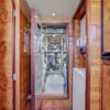 Examples of Monte Fino’s masterful craftsmanship are found in all areas. For example, the air conditioning vents are painstakingly carved from wood to match the interior, a feature usually found only on superyachts. As you move below the deck, there is a similarly arranged guest room to starboard. However, it differs in that it contains a queen berth. It too includes an ensuite head and shower (to fore), plenty of storage, and a dash of Far East flair.